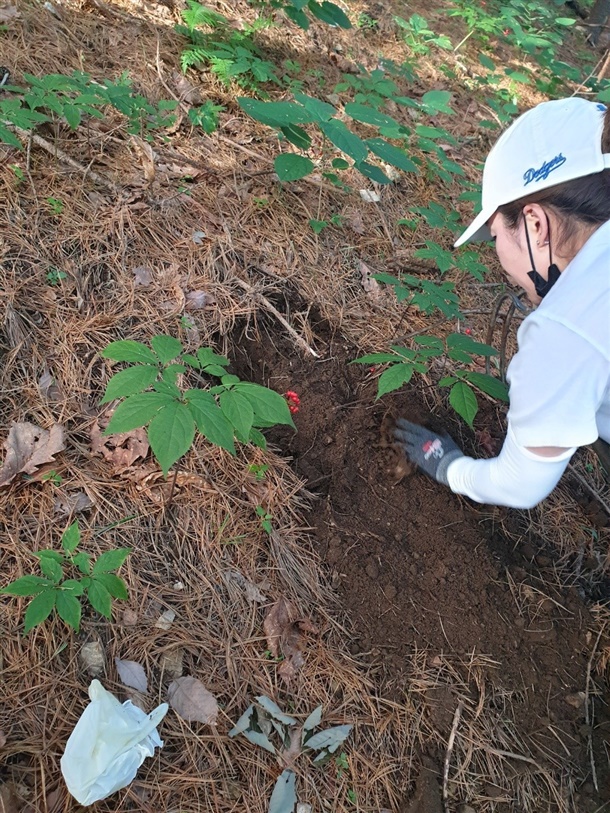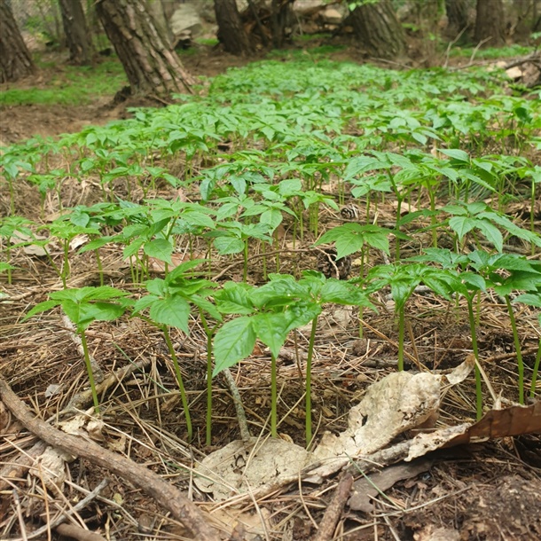 산삼의 씨를 산속에 뿌려 자연 야생상태로 재배한것이