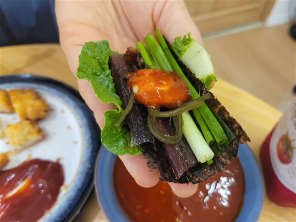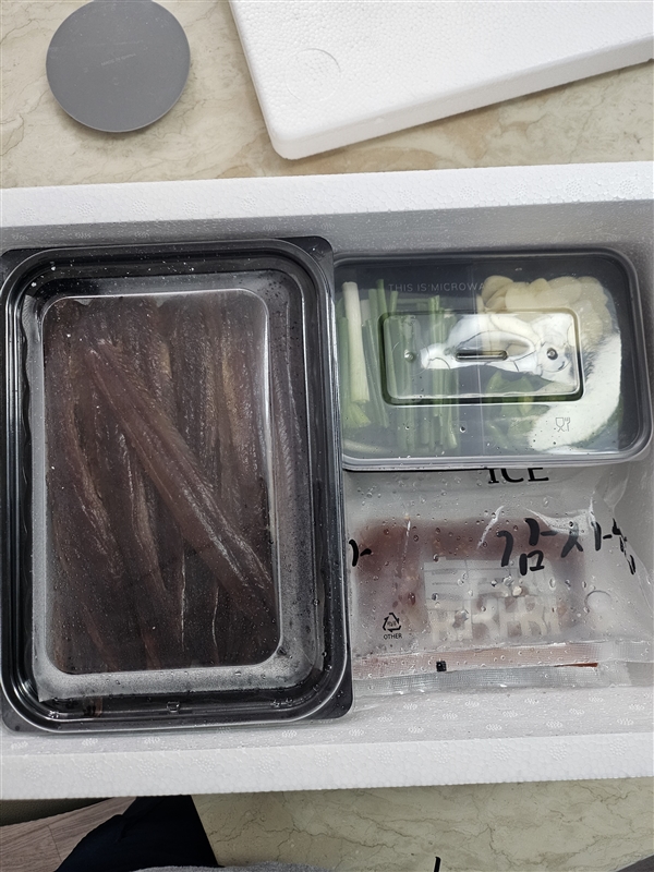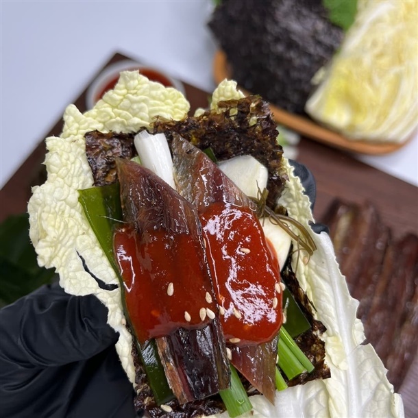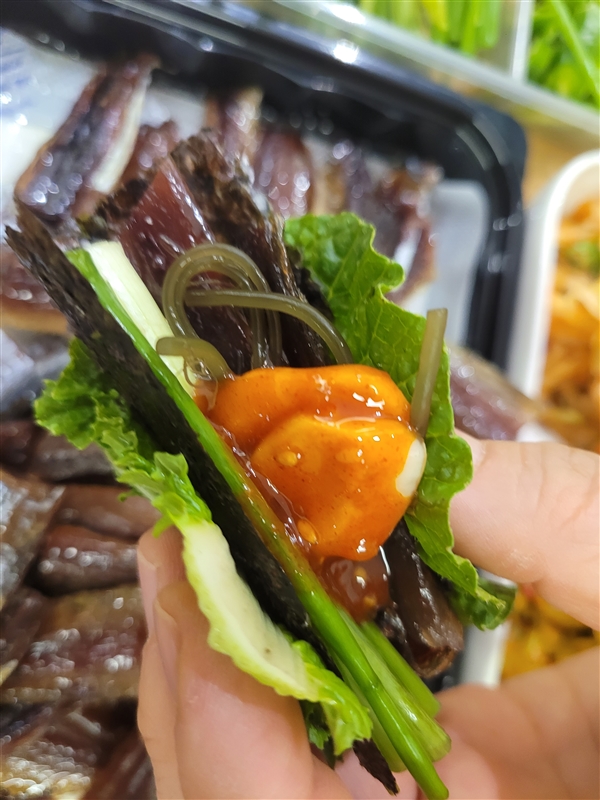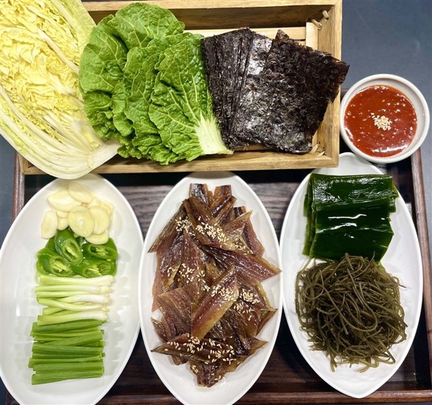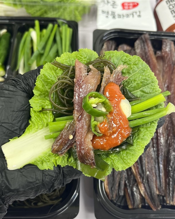 | 원재료 함량 | 꽁치(원양산 100%),쌈배추,알배추,고추,마늘,쪽파,꼬시래기,다시마,김,쌈장,수제맛초장(소스 고추장60%(밀:미국산,호주산),고추양념(중국산 고추가루,마늘,양파,정제수),설탕(국내산), 물엿,과당, 마늘(국산), 정제소금(국산), 볶음참깨(파키스탄)) |