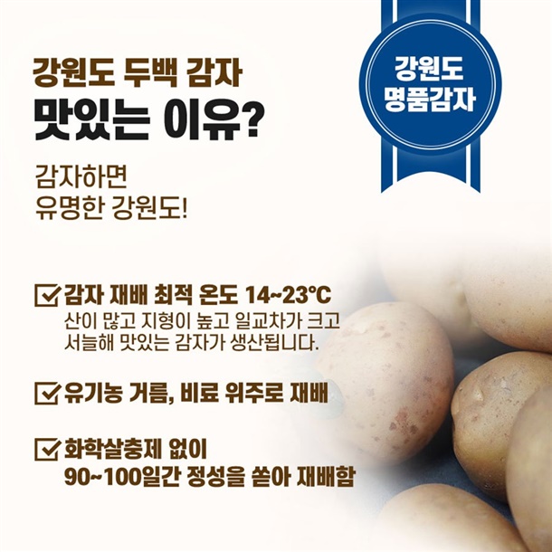 최상의 조건인 강원도에서 수확한 햇 두백감자