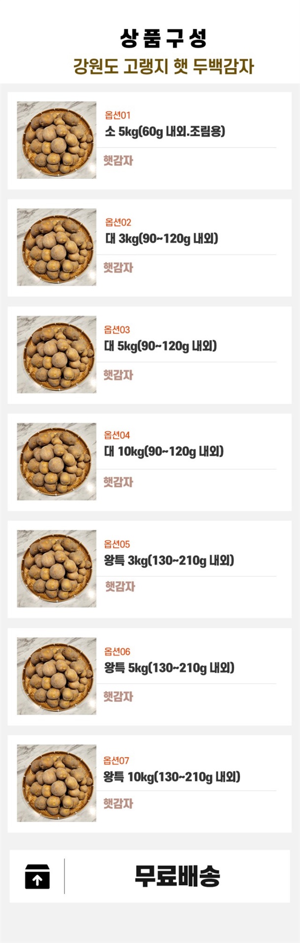2️⃣햇 두백감자 대자(5kg): 17,900원(무료배송)
