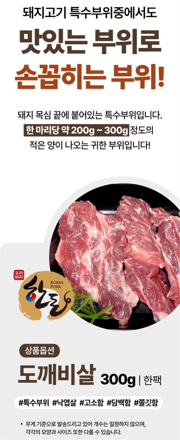 🔸한돈 도깨비살(낙엽살) 1팩(300g): 5,900원
