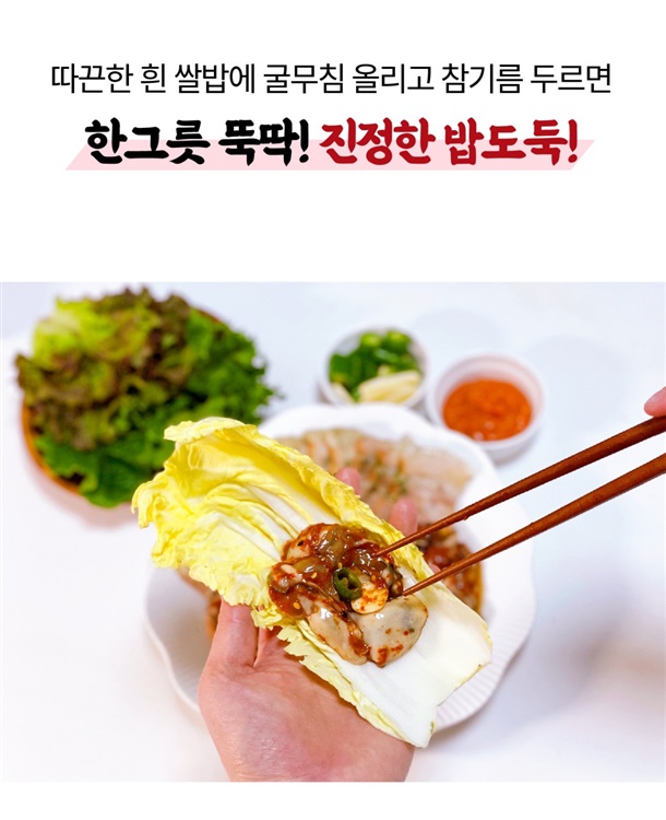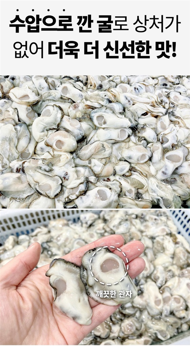 수압으로 까서 관자와 굴의 신선도가 살아있는 통영 생굴무침!